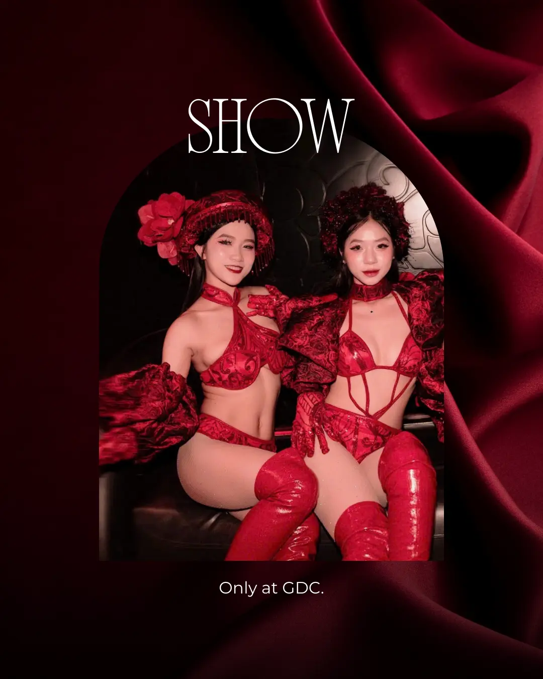 Baccarat – Roulettes – Slots Machine – Texas Hold’em Poker – Black Jack – Sic Bo – Daily Show – Monthly Tournament – Only at GDC.