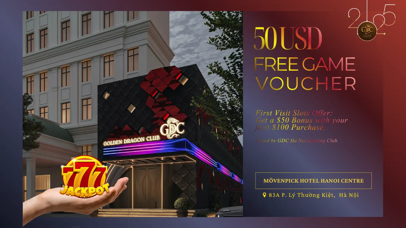Get a $50 Slots Game Bonus with your first $100 Purchase at GDC Ha Noi Gaming Club.